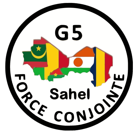 The logo of the G5 Sahel joint task force, an interstate military unit for the five formerly French colonies in the Sahel, represented by a flag map of the five countries.