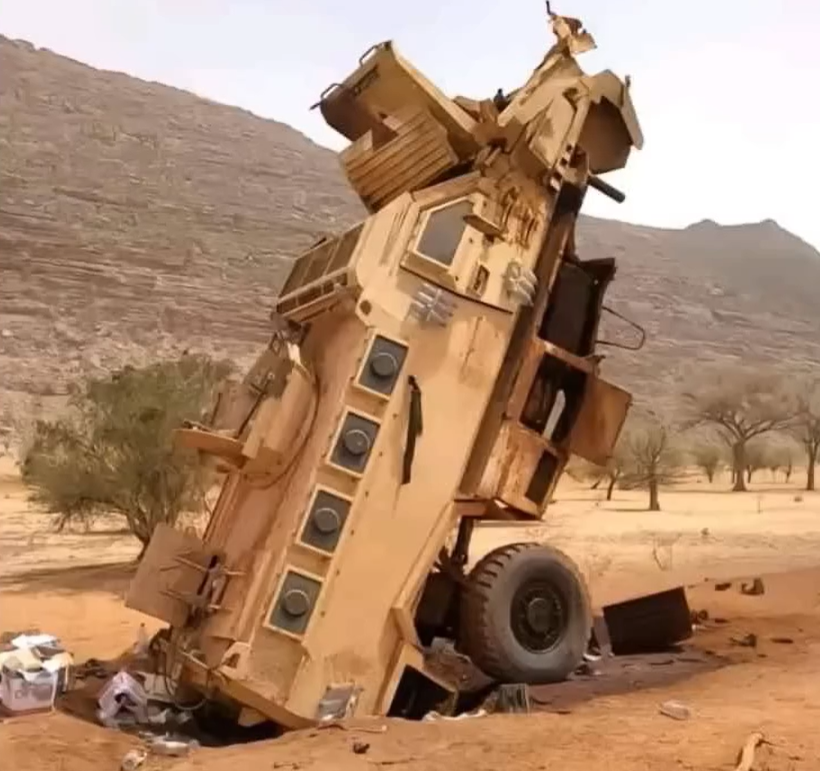 A Russian armored car after the battle of Tinzaouaten in 2024, where a Malian army convoy with a Wagner escort was ambushed and wiped out by rebels.